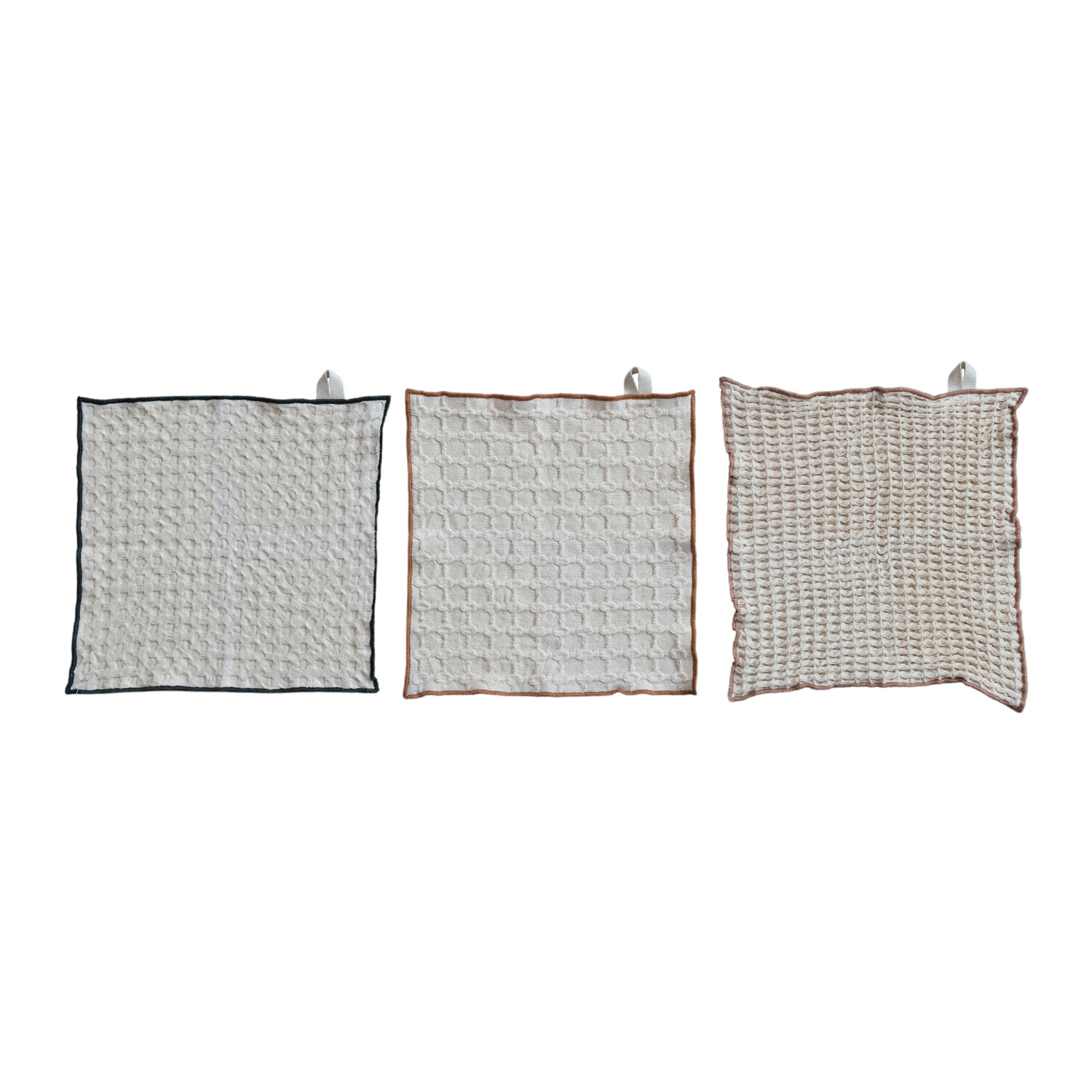Square Cotton Waffle Weave Dish Cloths w/ Colored Edge, Set of 3