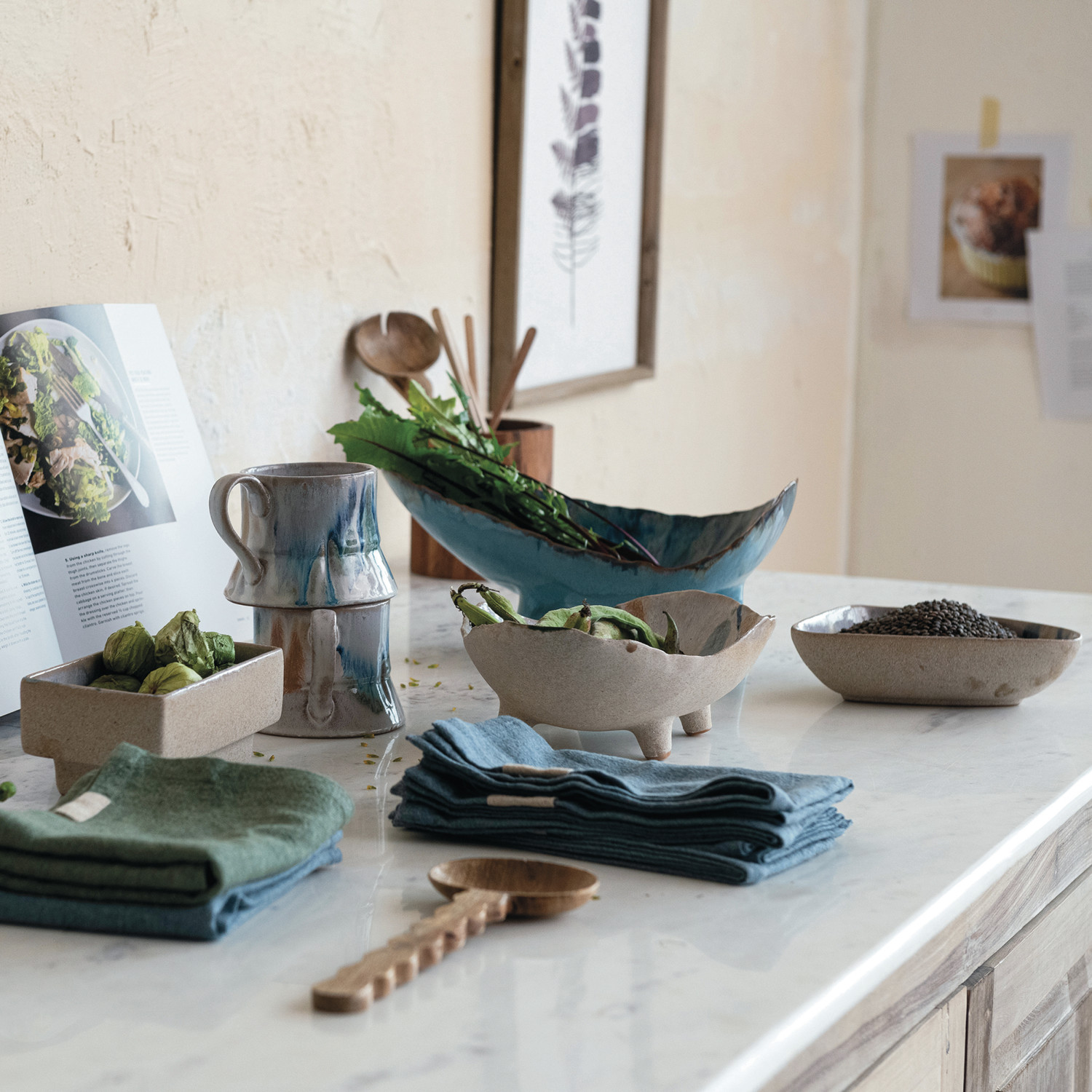 This Azure Footed Stoneware Bowl is a blend of natural form and mesmerizing color. The reactive glaze creates a dynamic blue pattern, with each bowl offering a distinct look that varies from piece to piece. The 12.50 inches in length, 8.50 inches in width, and 6.00 inches in height make it a versatile choice for both serving and showcasing, while the food-safe material ensures it's ready for any occasion. Whether filled with fresh produce or left empty to admire its beauty, this bowl stands out with its elevated design and captivating hue, making it a cherished addition to any home. Its organic shape and footed base combine to create a piece that's as much a conversation starter as it is a functional item.