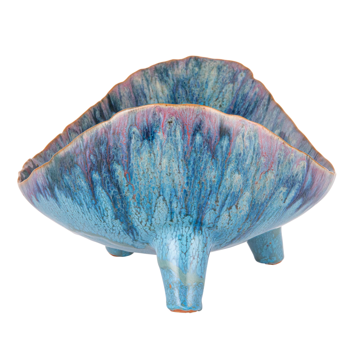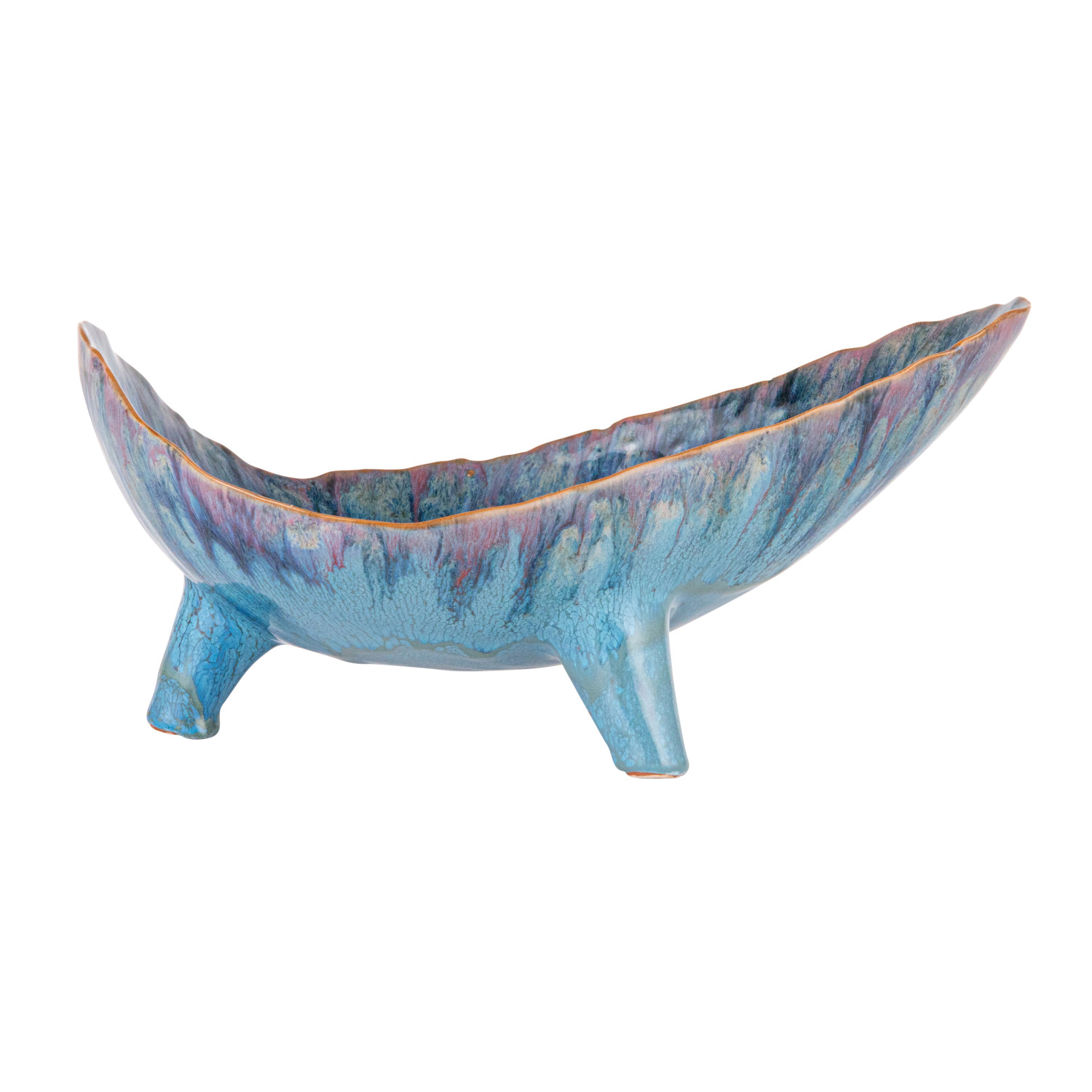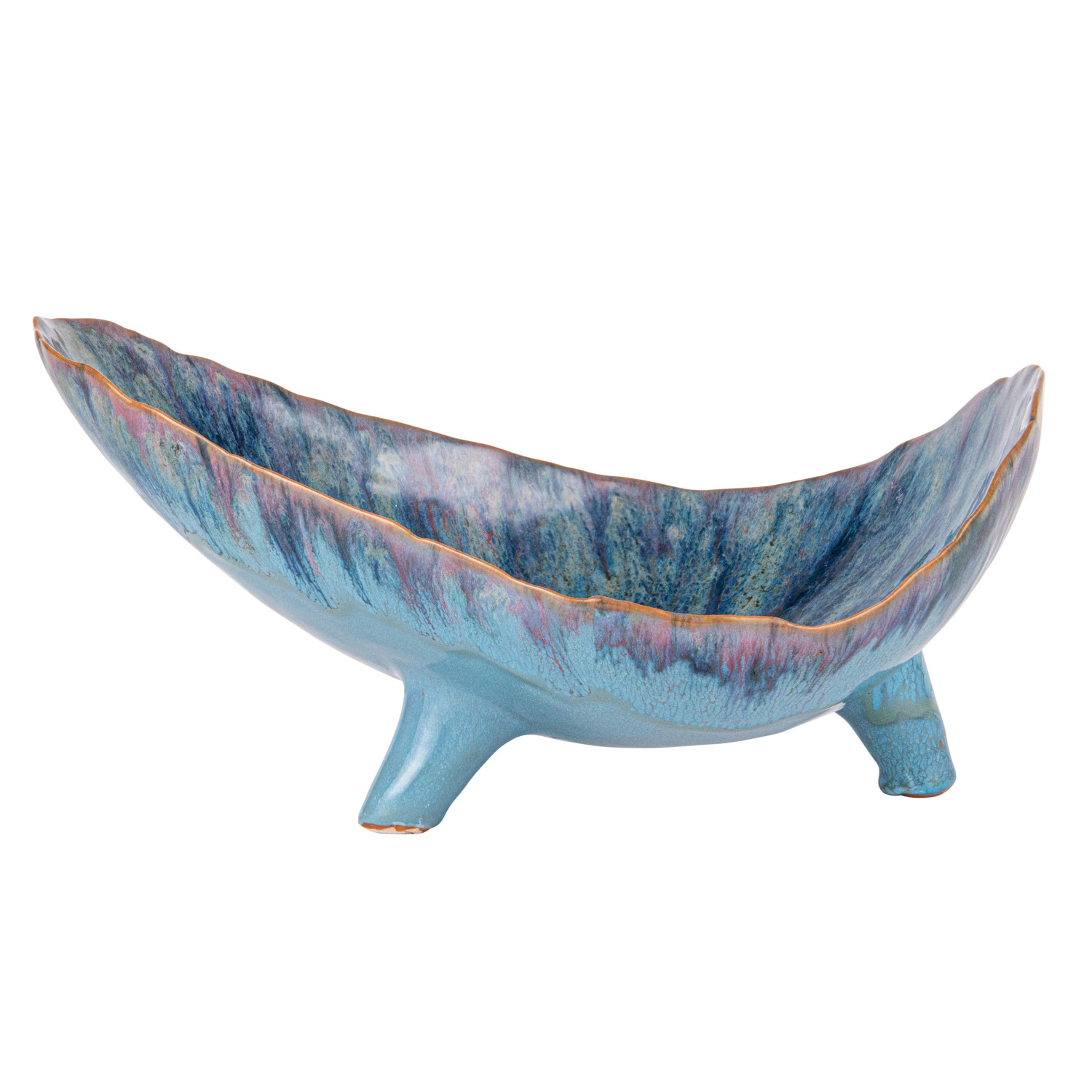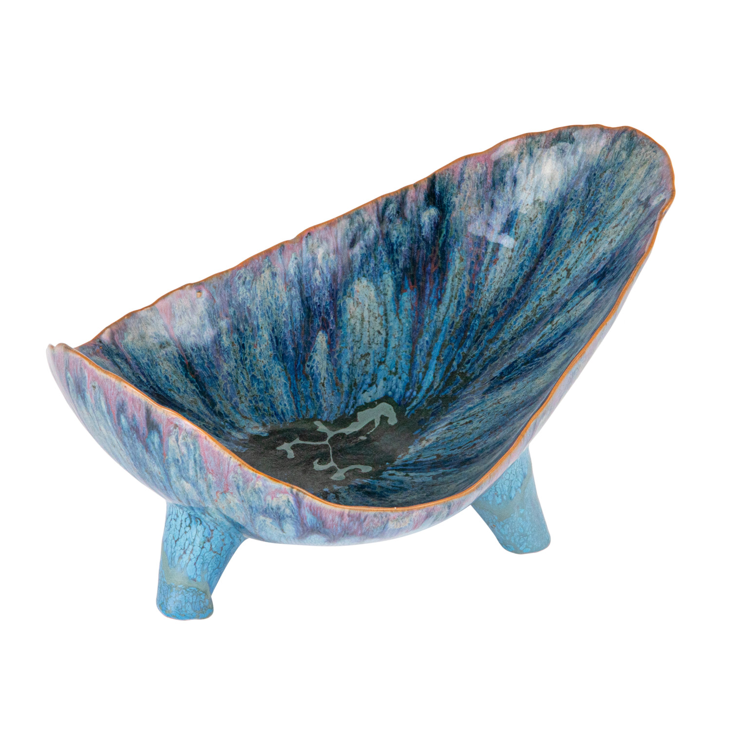 Catalog Name: 12-1/2"L x 8-1/2"W x 6"H Stoneware Organic Shaped Footed Bowl, Reactive Glaze, Blue (Each One Will Vary)