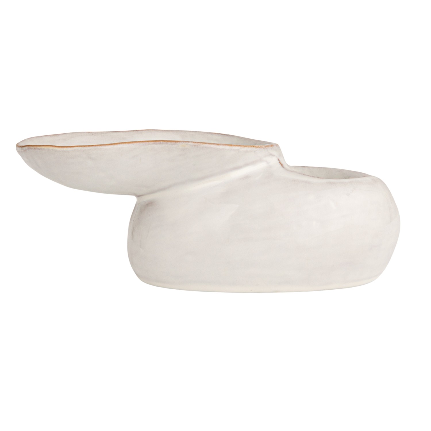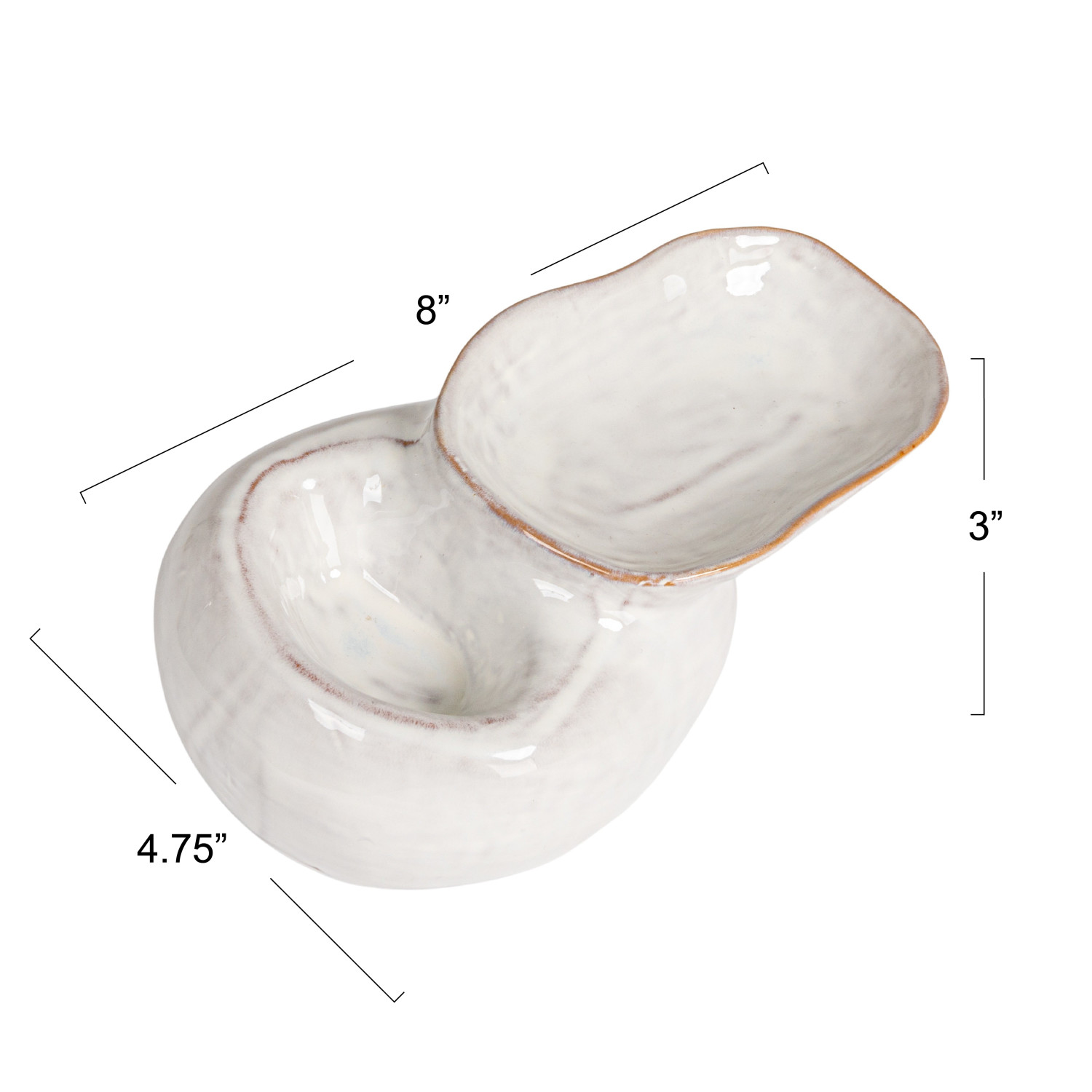 Catalog Name: 8"L x 4-3/4"W x 3"H Stoneware Pedestal Dish w/ 2 Sections, Reactive Glaze, White (Each One Will Vary)