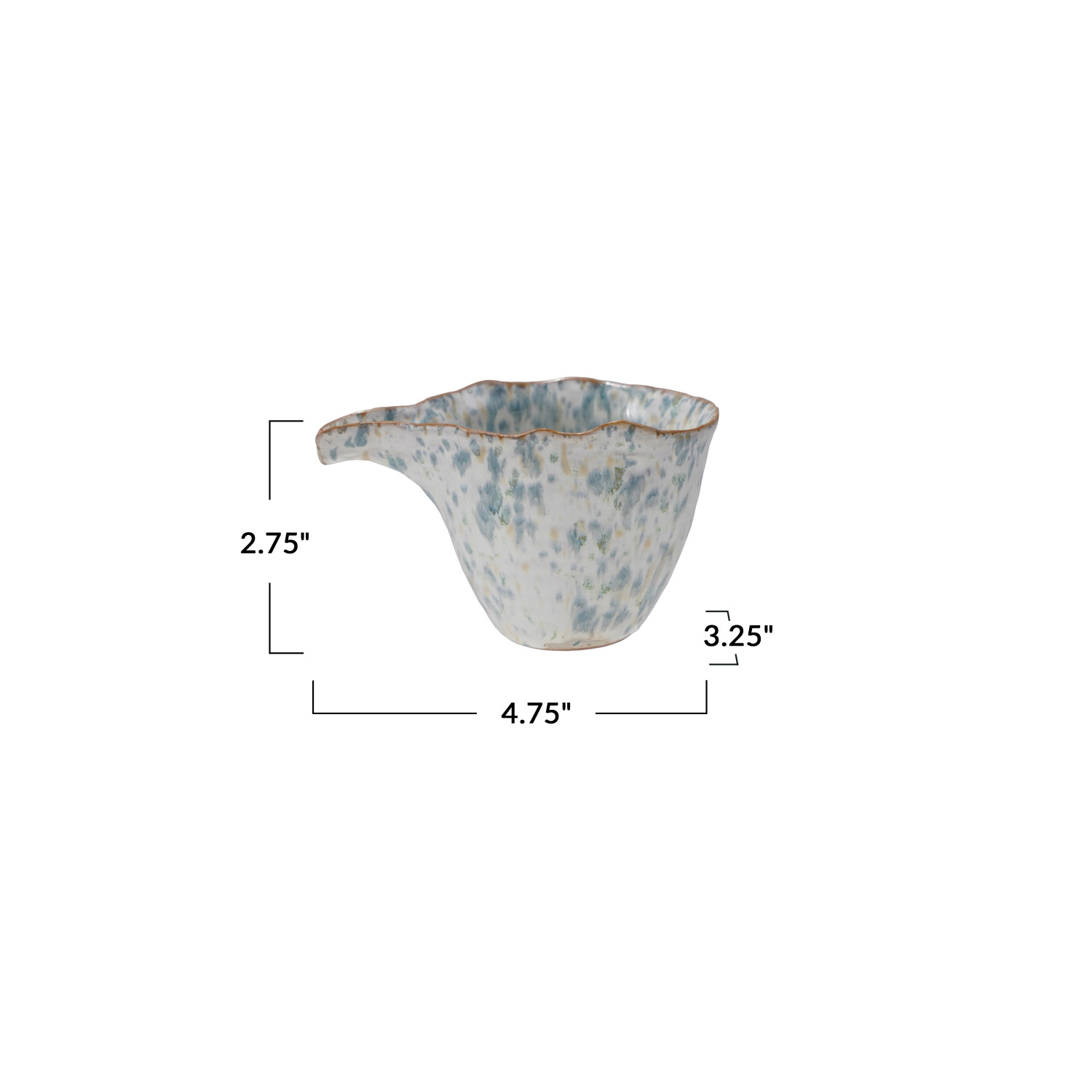 Catalog Name: 4-3/4"L x 3-1/4"W x 2-3/4"H 6 oz. Stoneware Organic Shaped Bowl w/ Spout, Reactive Glaze, Blue & White (Each One Will Vary)
