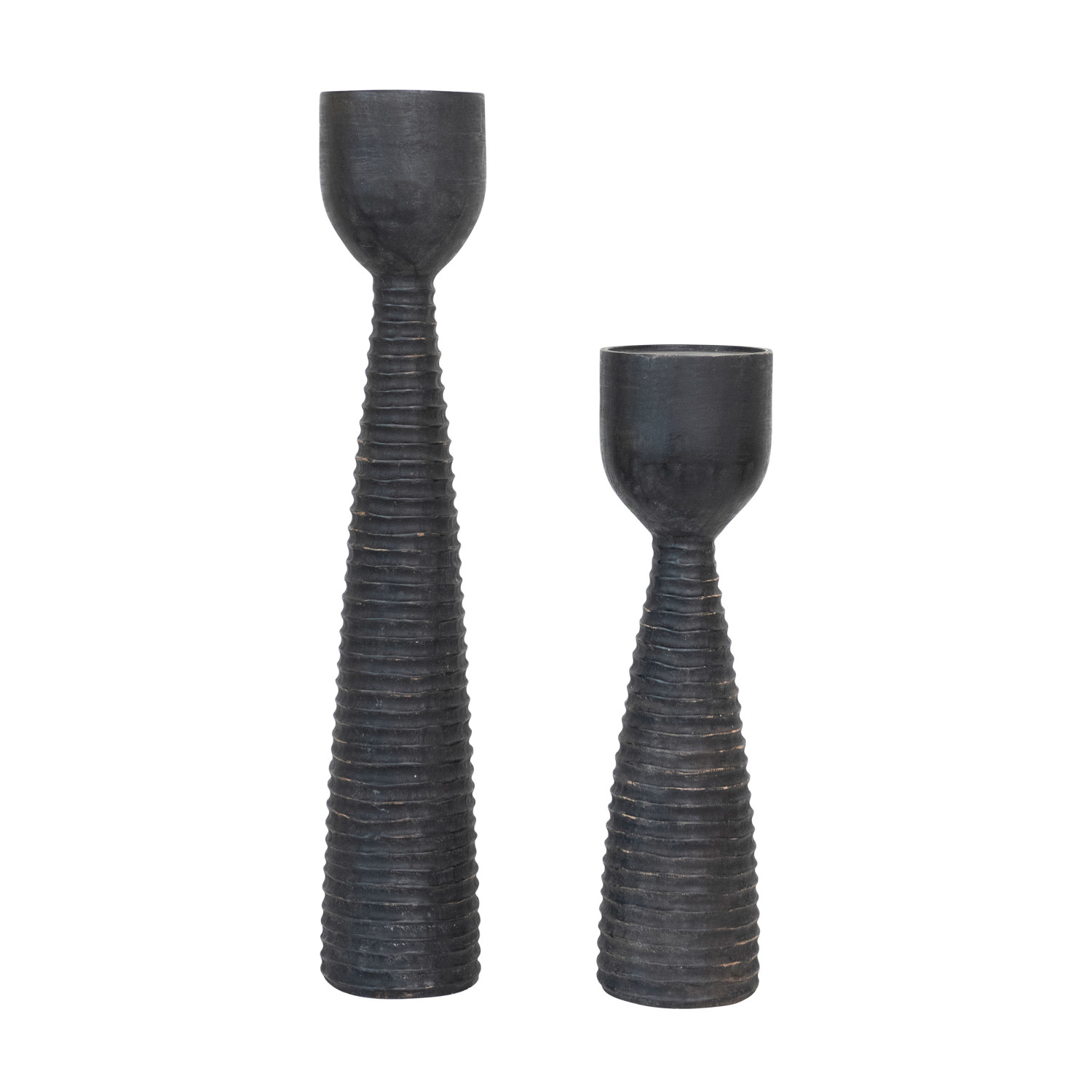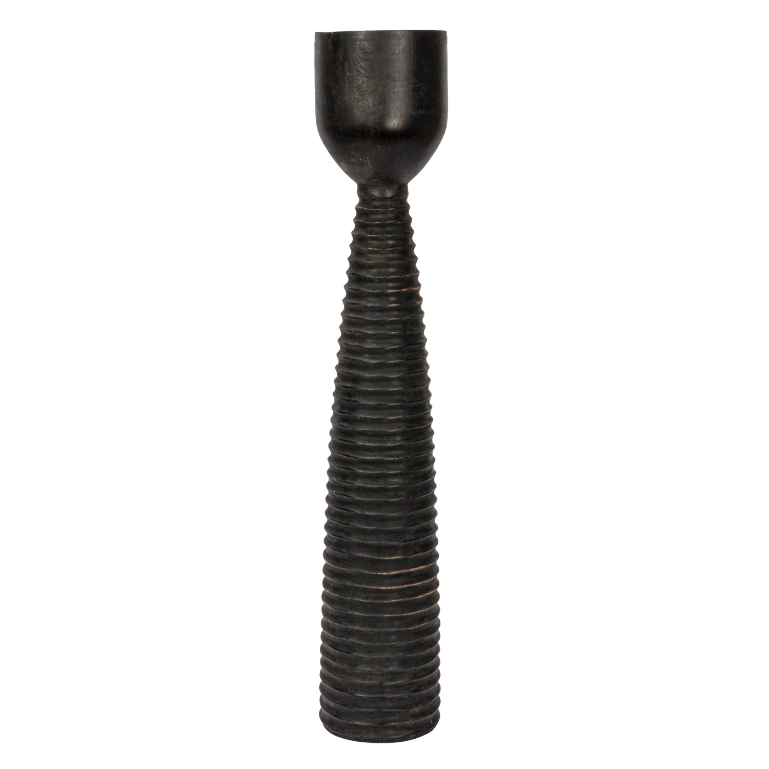 Catalog Name: 5-1/2" Round x 20"H Hand-Carved Mango Wood Ribbed Candle Holder, Black (Holds 4" Pillar)