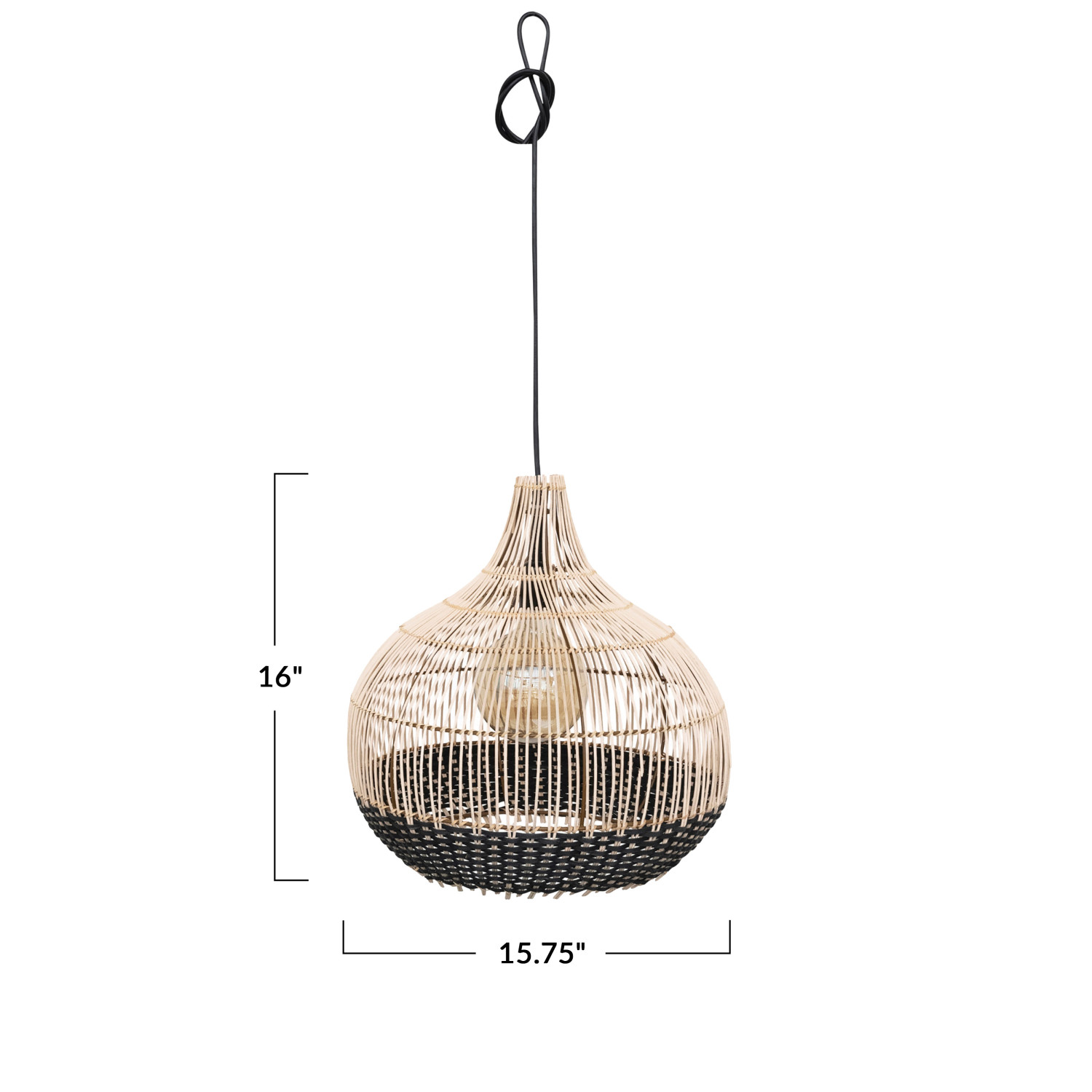 Catalog Name: 15-3/4" Round x 16"H Hand-Woven Cane Pendant Lamp, 6' Cord, Black & Natural (Hardwire Only)