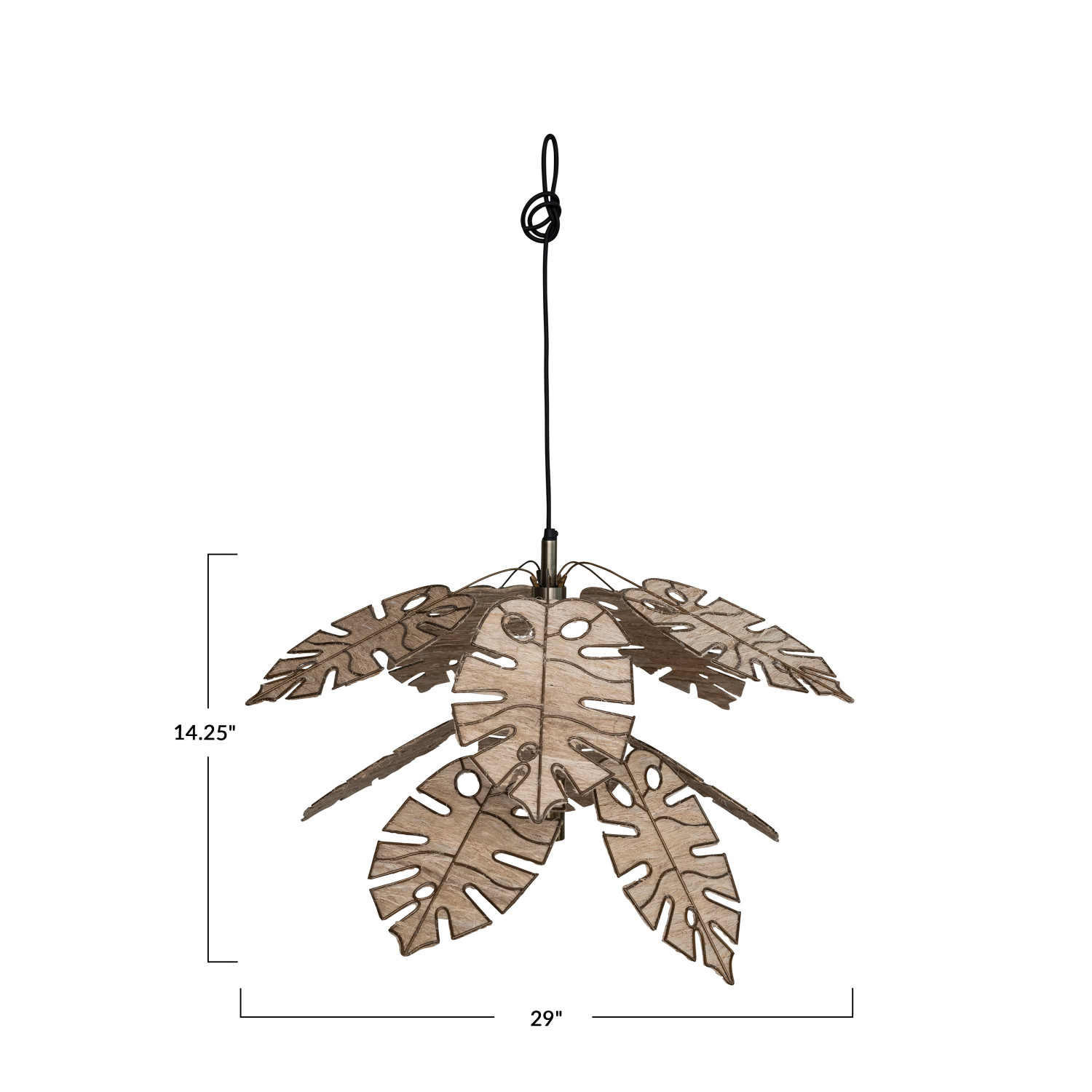 Catalog Name: 29" Round x 14-1/4"H Metal & Banana Fiber Leaf Pendant Lamp, 6' Fabric Cord, Antique Brass Finish & Natural, KD (Hardwire Only)