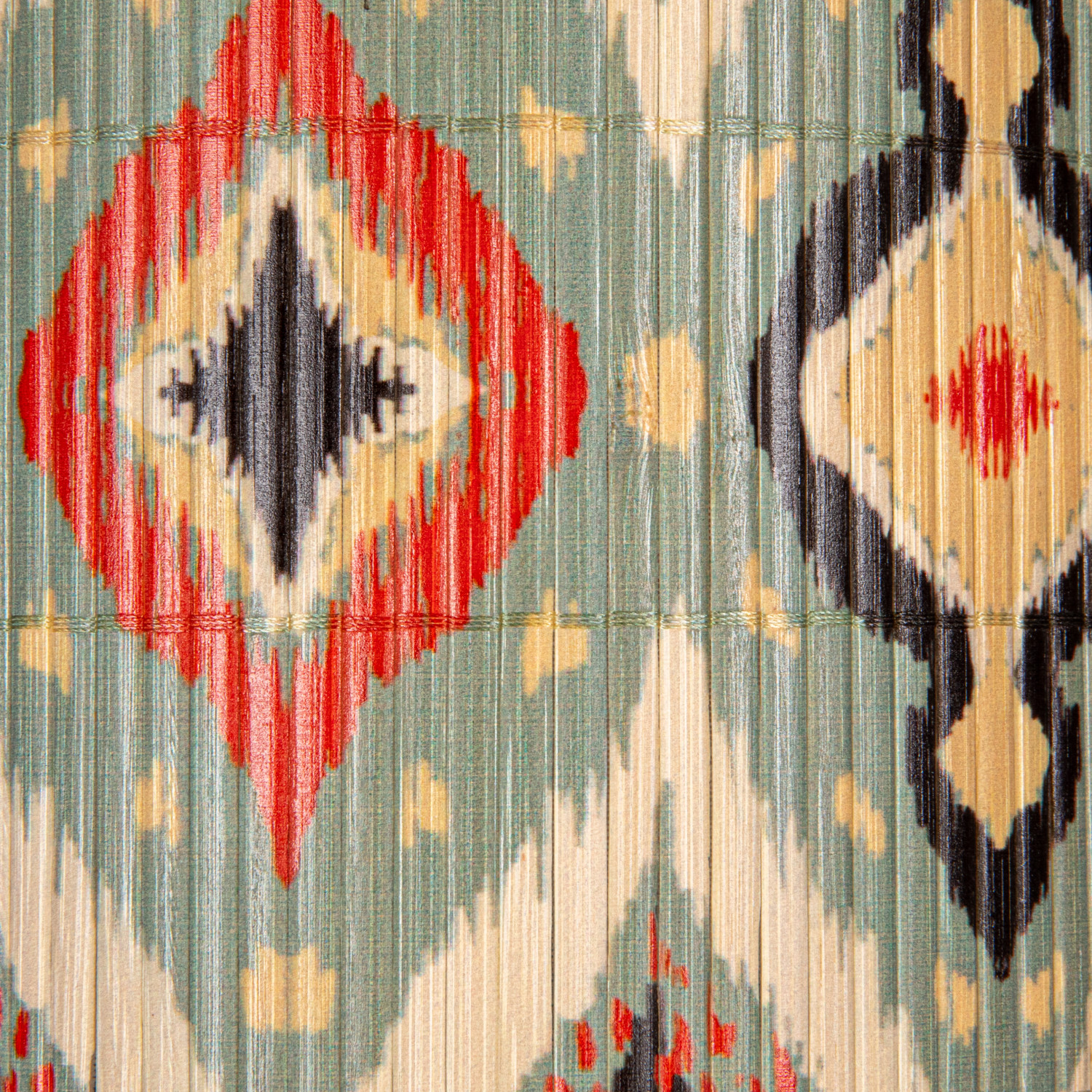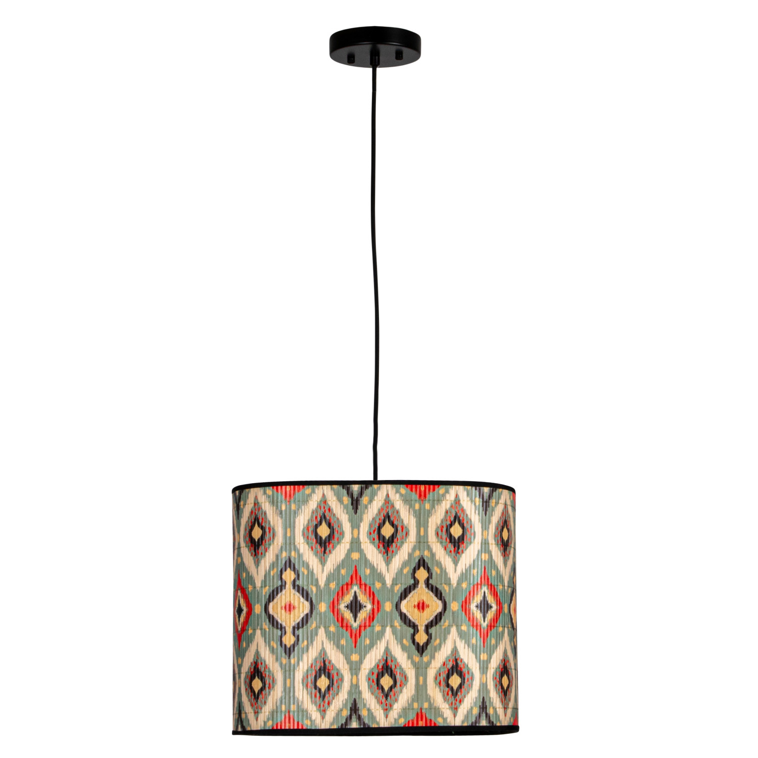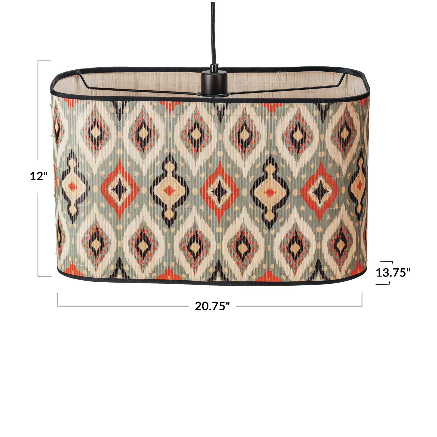Catalog Name: 20-3/4"L x 13-3/4"W x 12"H Bamboo Organic Shaped Pendant Lamp w/ Printed Ikat Pattern, 8' Fabric Cord, Multi Color (Hardwire Only)