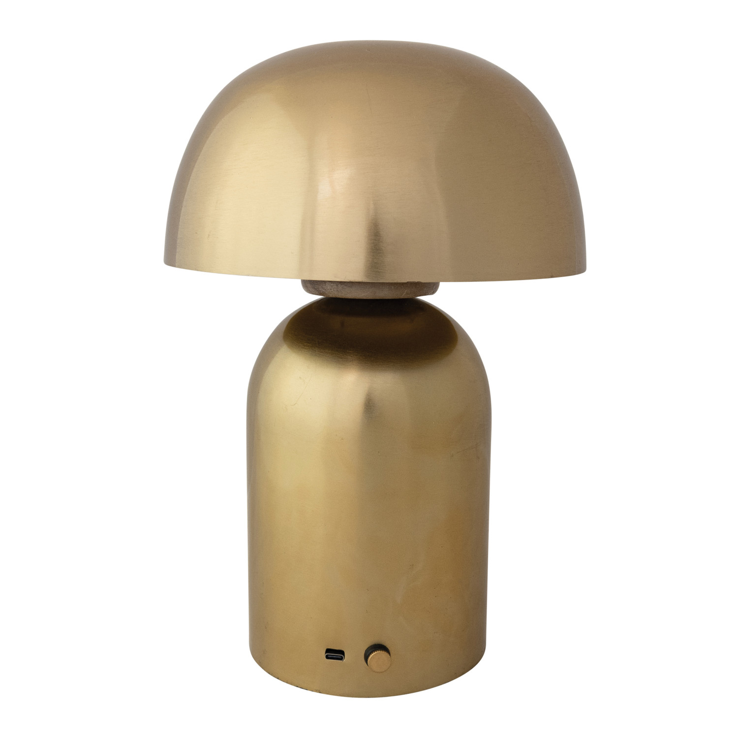 Catalog Name: 8" Round x 11-1/2"H Metal & Mango Wood LED Rechargeable Table Lamp w/ Touch Sensor, Gold Finish & Natural (Requires USB-C Cord & 5V-1A Adapter)
