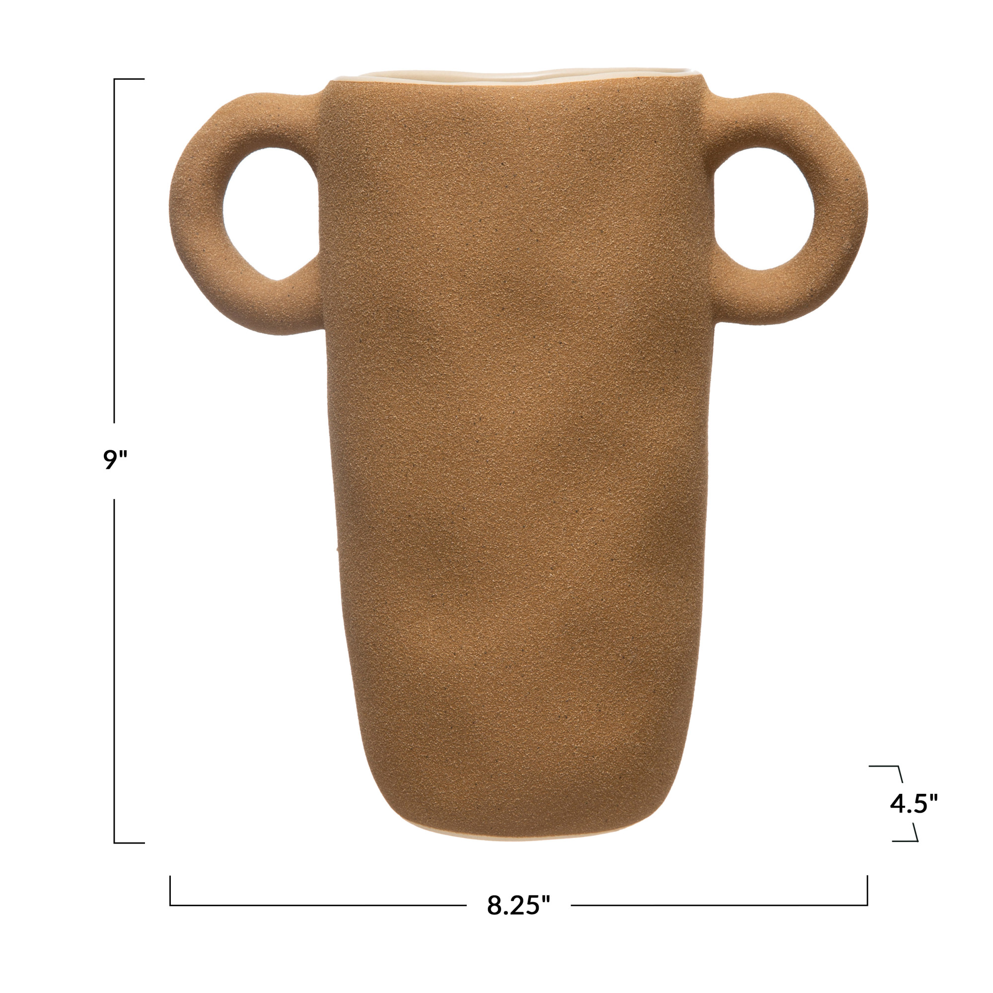 Catalog Name: 8-1/4"L x 4-1/2"W x 9"H Stoneware Vase w/ Handles, Sand Finish, Terra-cotta Color