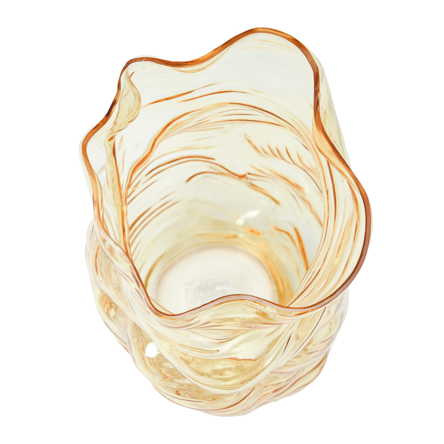 Catalog Name: 7-3/4"L x 7-3/4"W x 13-3/4"H Hand-Blown Glass Organic Shaped Vase, Amber Color