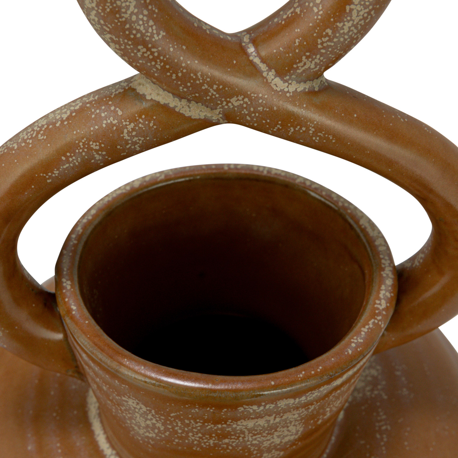 Catalog Name: 5-1/4" Round x 8-1/2"H Stoneware Vase w/ Twisted Handle, Reactive Glaze, Brown (Each One Will Vary)