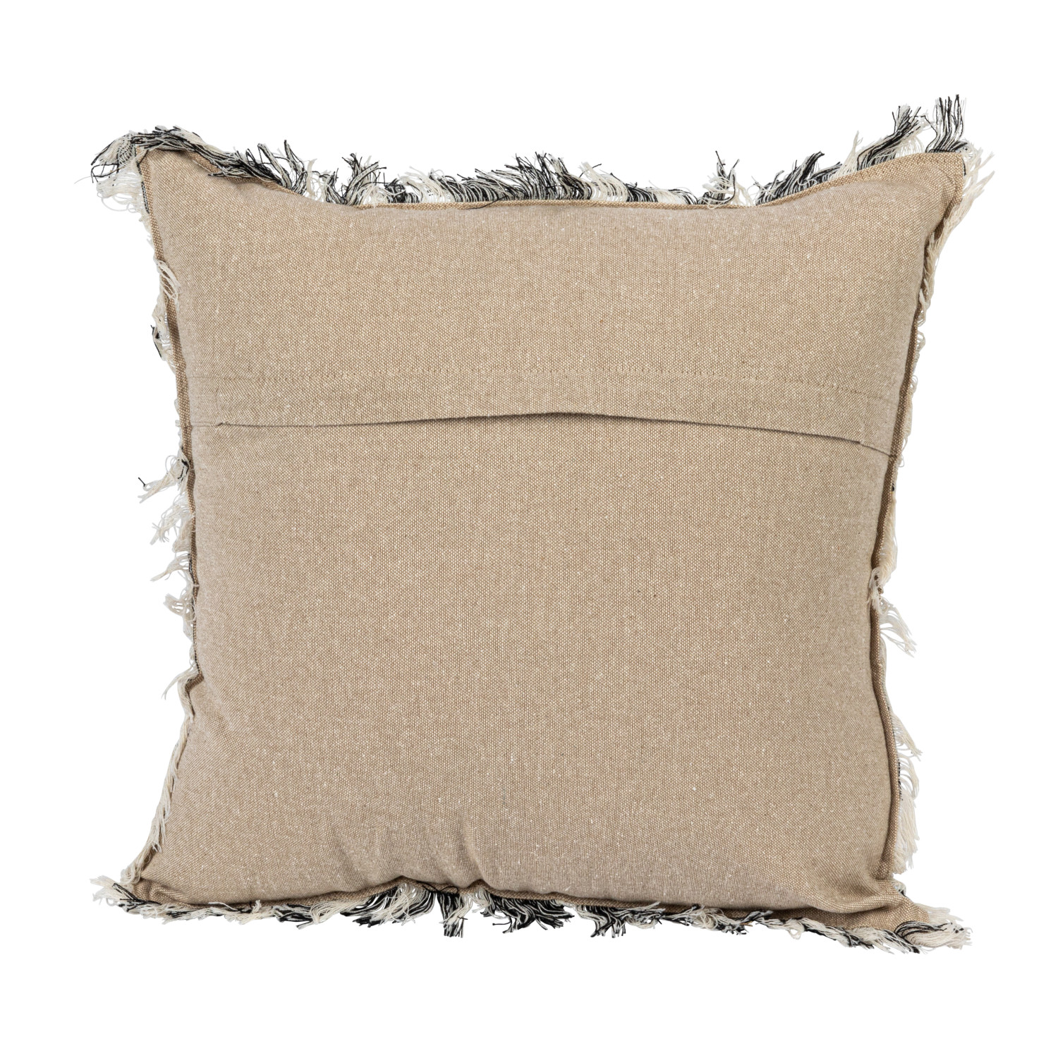 Catalog Name: 18" Square Woven Cotton Pillow w/ Geometric Pattern, Chambray Back & Fringe, Black, Cream Color & Natural