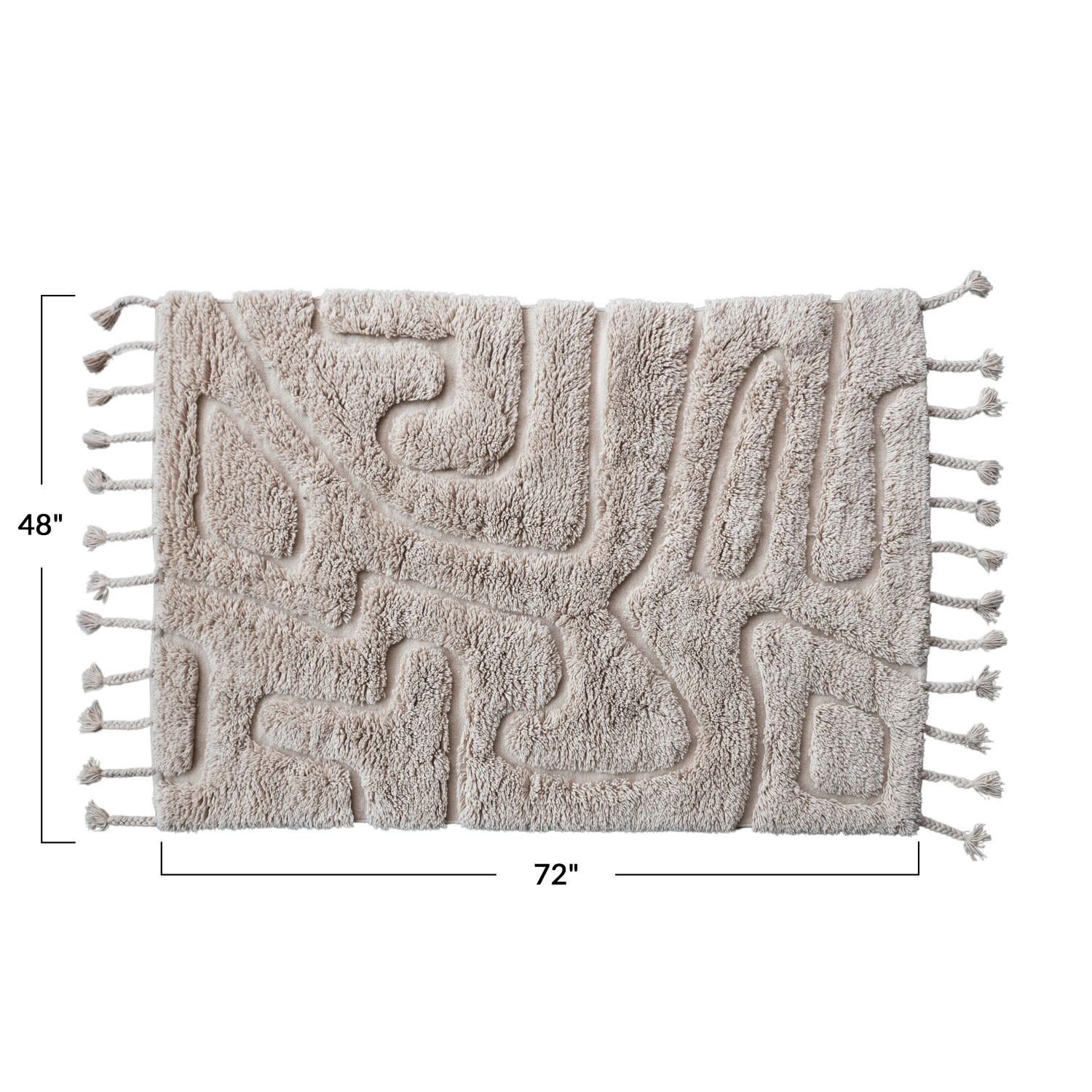 Catalog Name: 3'11" x 5'11" Hand-Woven Wool & Cotton Tufted Rug w/ Design, Varying Pile Height & Braided Tassels, Natural