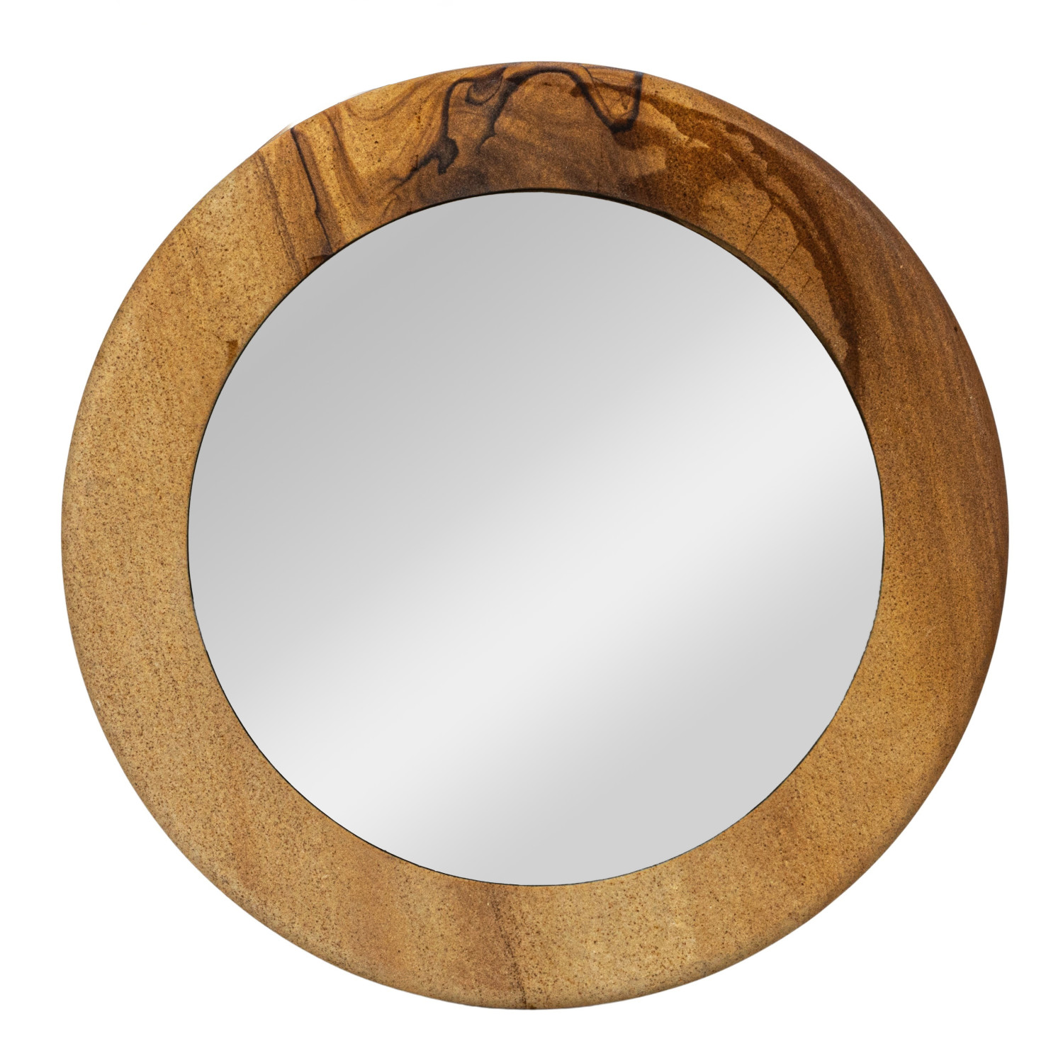 Catalog Name: 14" Round MDF & Sandstone Framed Wall Mirror, Natural